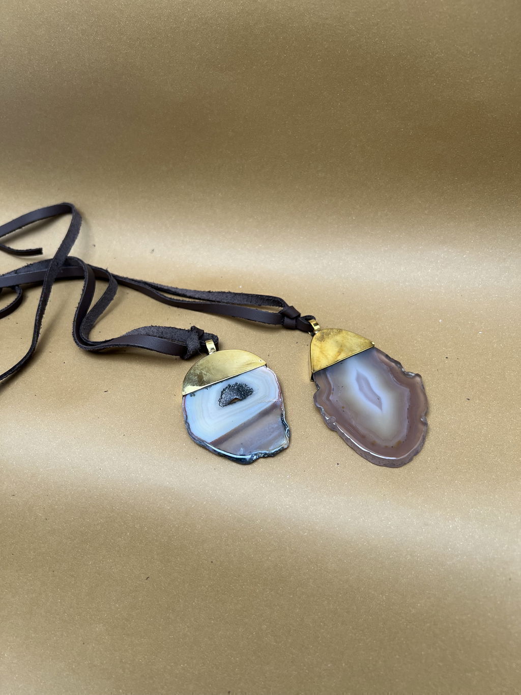 Piedra Ágata engarzada en Bronce con collar de tiento de cuero.