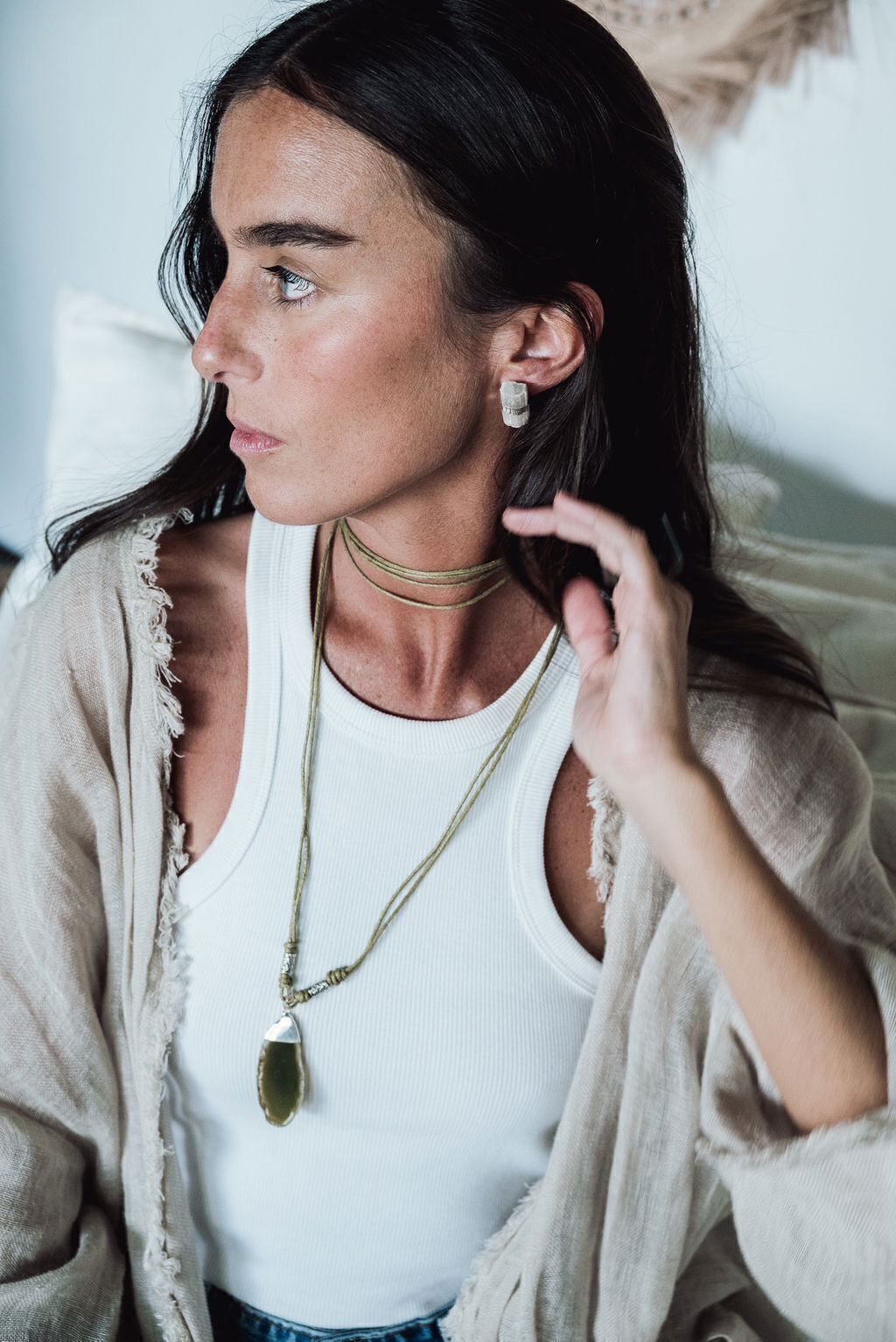 Collar de hilo doble color Verde, largo para atar y regular su forma de uso.